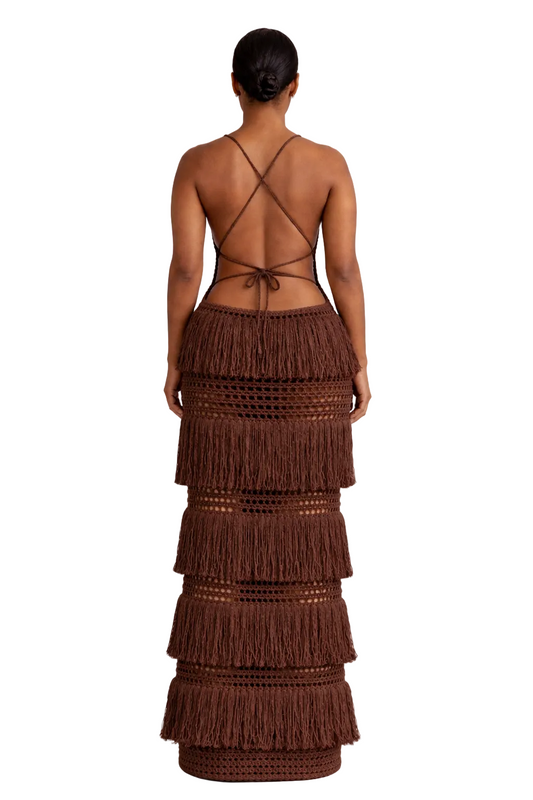 Margaux Fringe Dress — Coffee